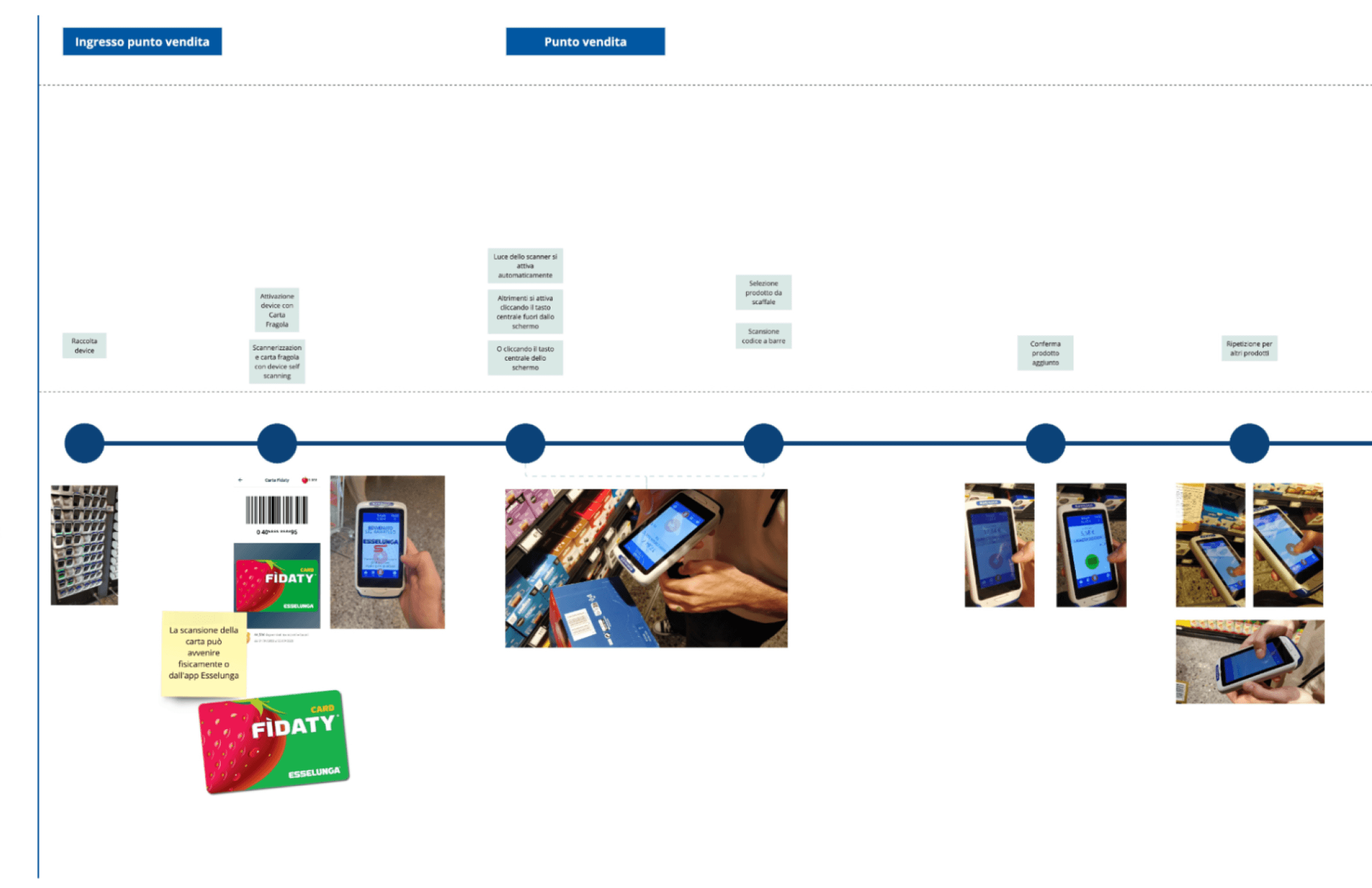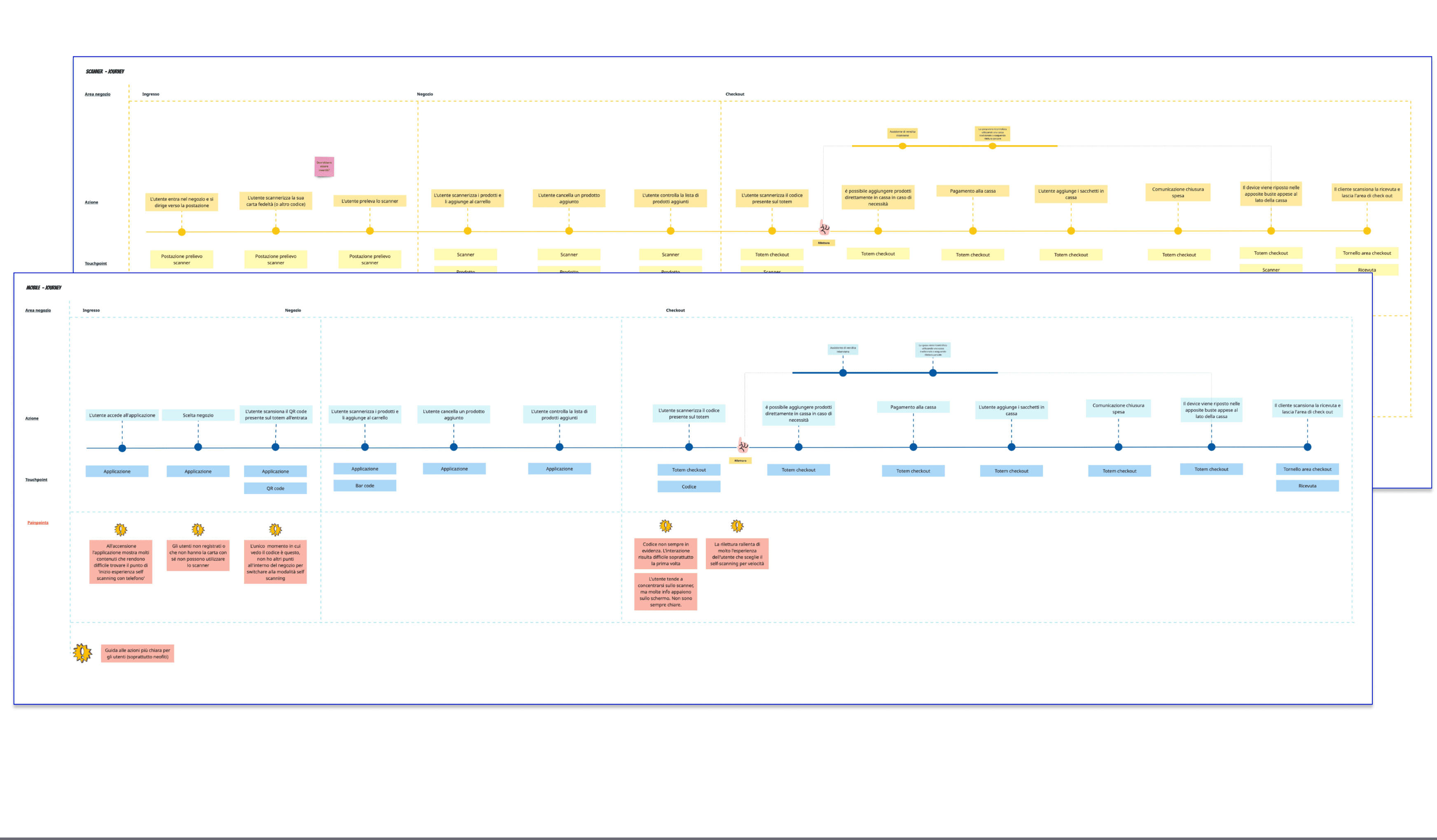 To map the in-store self-scanning experience, I created several customer journey maps. These helped us identify the main pain points, user needs, and opportunities for improvement within the shopping experience. The journey maps served as the starting point for the redesign.