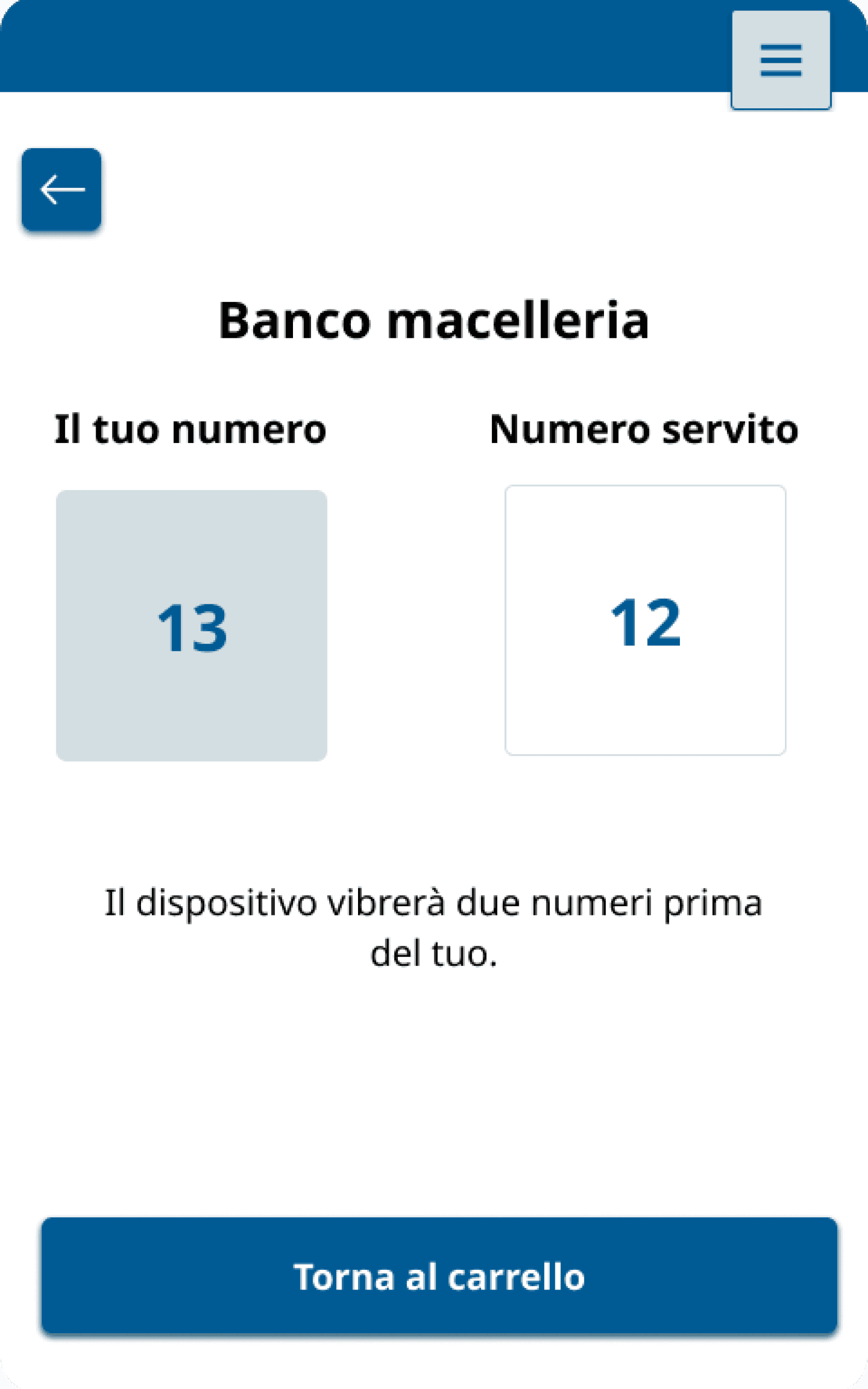 When the employee is about to call their number, the device vibrates and displays this screen, prompting the user to head to the fresh food counter to purchase their desired products.